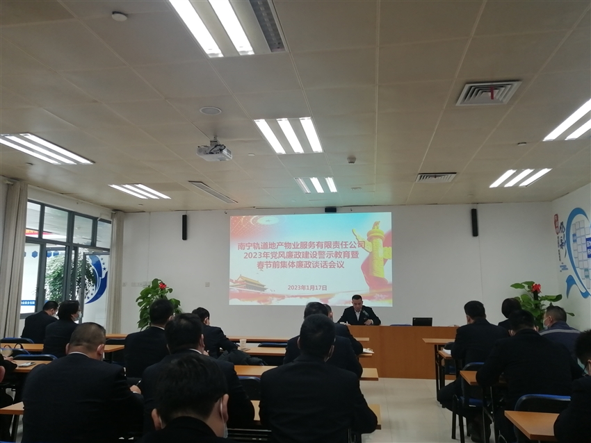 為深入學習貫徹黨的二十大及二十屆中央紀委二次全會會議精神,推進公司全面從嚴治黨和黨風廉政建設工作,增強全體黨員干部的廉潔自律意識,營造風清氣正的廉潔過節(jié)氛圍,2023年1月17日南寧軌道地產(chǎn)物業(yè)公司黨支部在東站樞紐培訓室召開2023年黨風廉政建設警示教育暨春節(jié)前集體廉潔談話,公司全體黨員、入黨積極分子、中層管理人員共47人參加了此次會議。